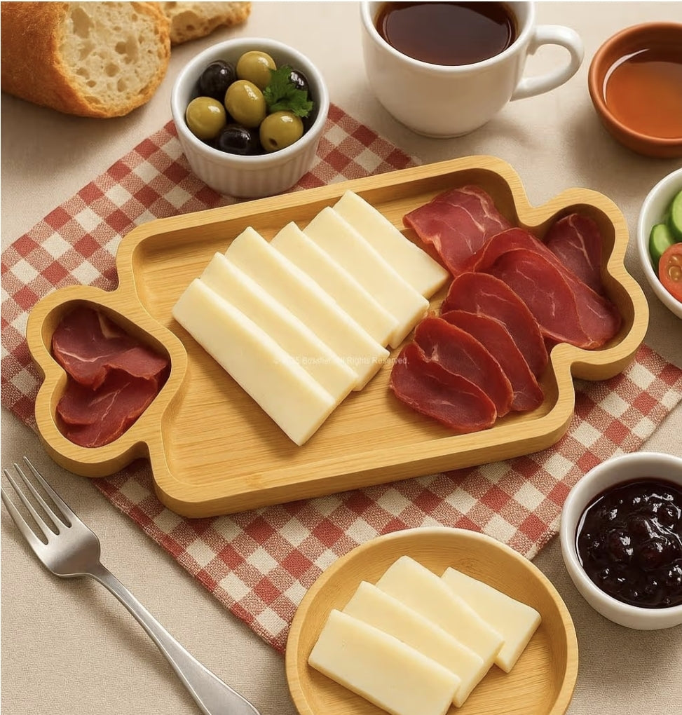Doğal bambu malzemeden üretilmiş Busstier Bambu Sunum Tabağı, şık ve dayanıklı yapısıyla çerez, meze, atıştırmalık ve kahvaltılık sunumlarınıza zarafet katıyor. Dekoratif ve kullanışlı tasarımı, hem günlük kullanım hem de misafirler için ideal bir sunum alternatifi sunar.