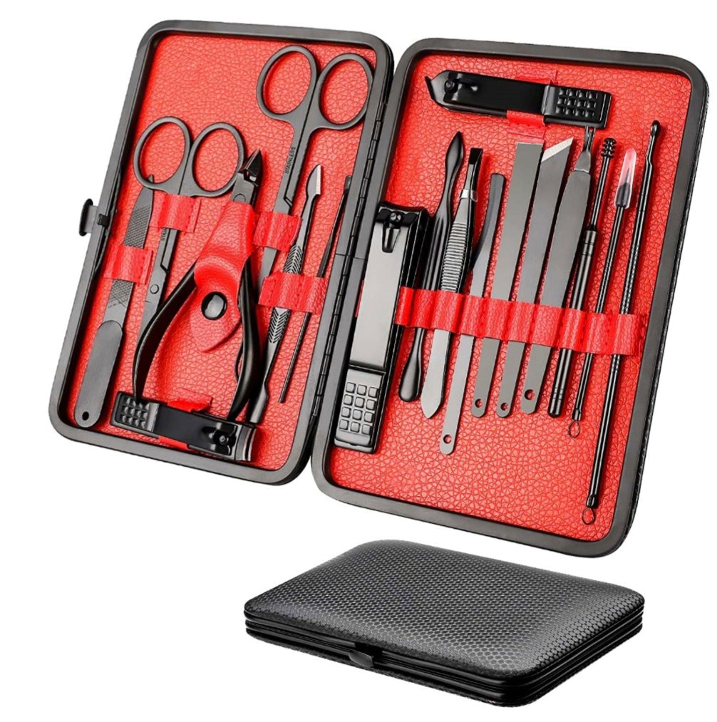 Deri Çantalı Siyah 18 Parça Manikür Seti