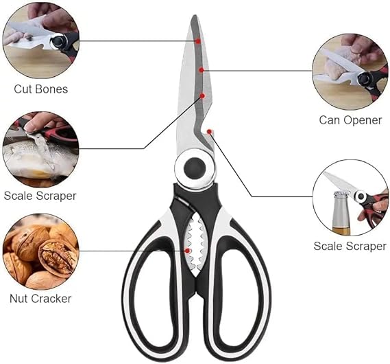 - ÇOK FONKSİYONLU Keskin Makas: Mutfak makası, yüksek kaliteli paslanmaz çelikten, korozyona dayanıklı, son derece keskin ve dayanıklıdır.